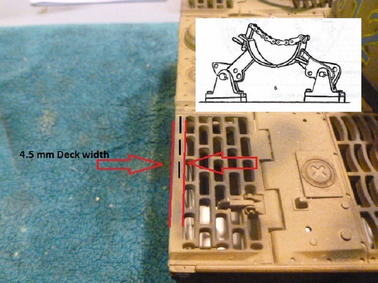engine panel on the original HL top hull is around 4.5mm thick. I plan to mount a travel lock onto the rear of my Mid Production Tiger. In order to do this I will need this width as my plan is to make the travel lock from 3 layers of 1.5mm brass strip. Cutting off the back of the Hull and gluing it to the rear hull panel top edge will mean I only have 2-3mm to balance any travel lock onto.
