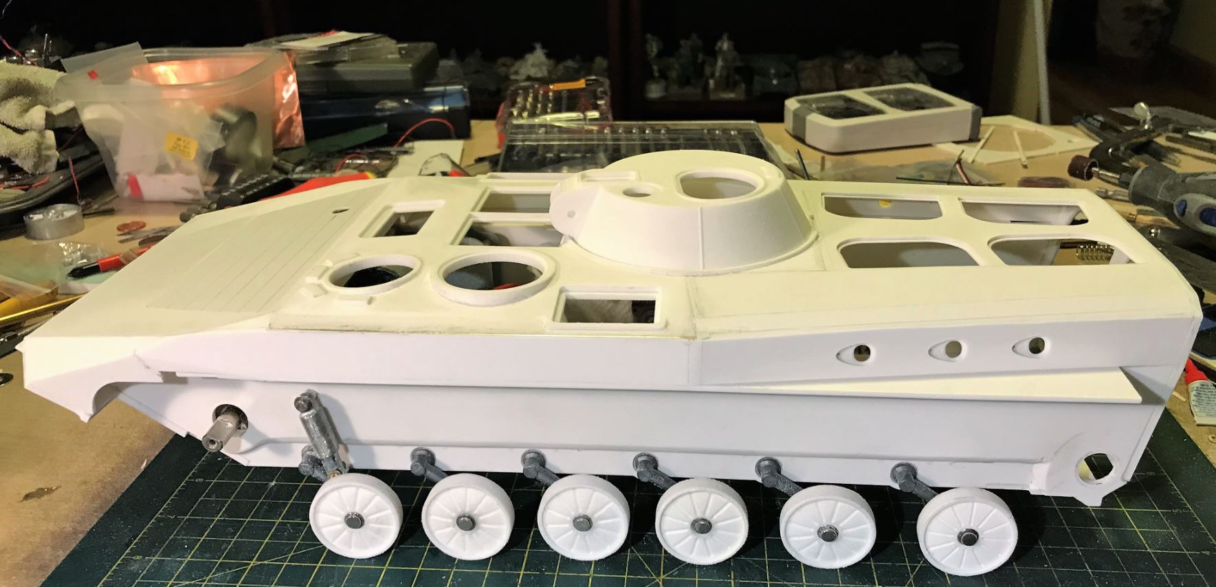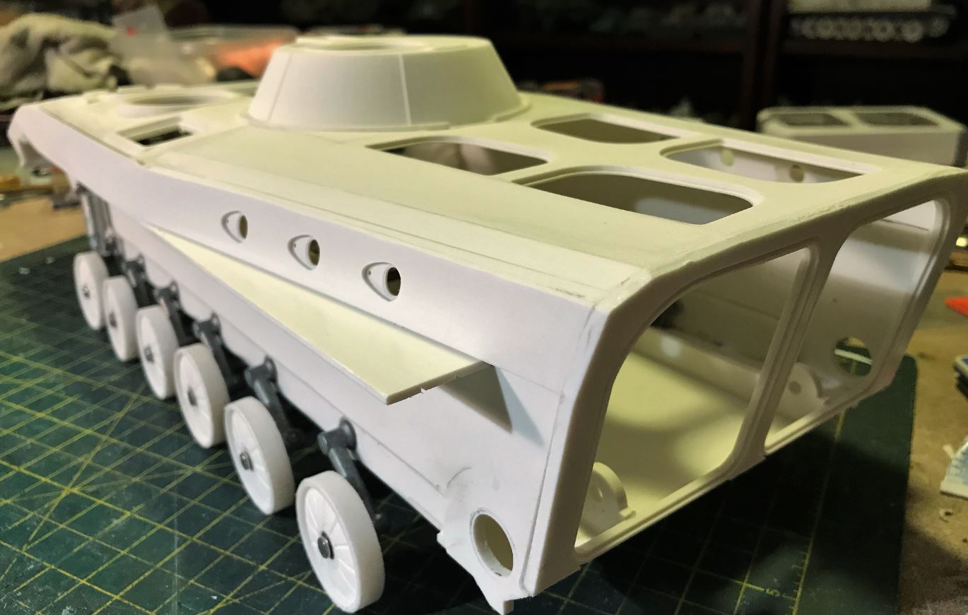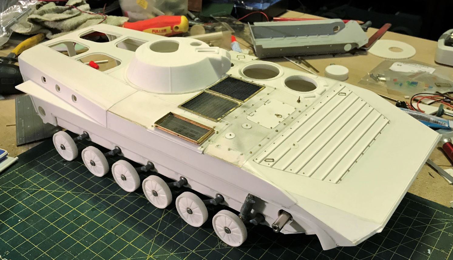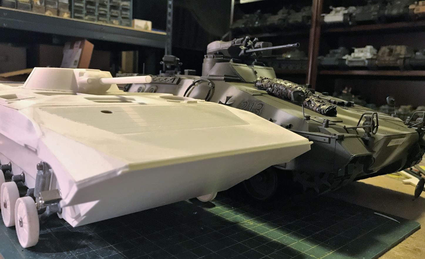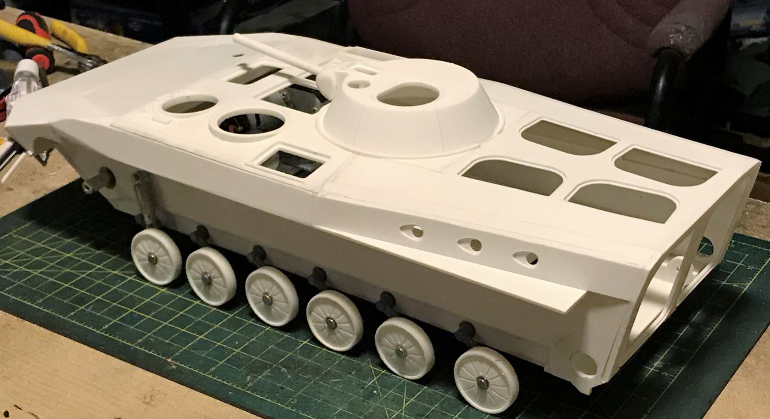 It is a fairly big RC tank. Although its turret and gun are really not impressive and quite ineffective in real life, it was ground breaking for its time to have such firepower on a APC. It should look very good with a Soviet commander and the five planned paratroop infantry riders on top, armed with AK-74 rifles, PKM machine gun and an RPG.