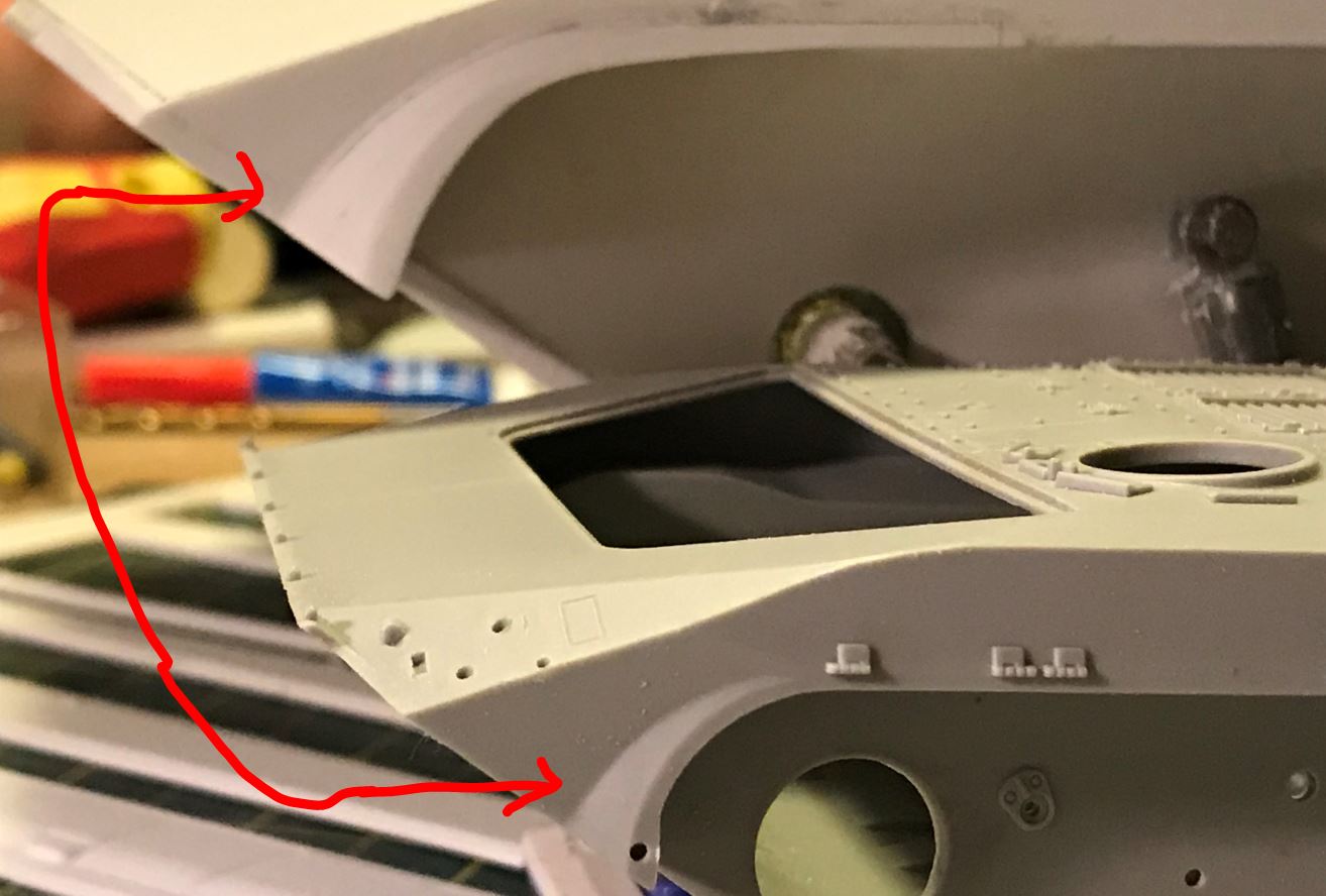 The 1/35 Trumpeter kit provides the required shape, angle and positioning points for this area.