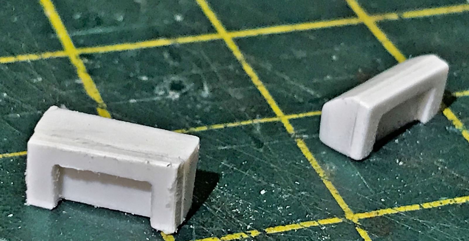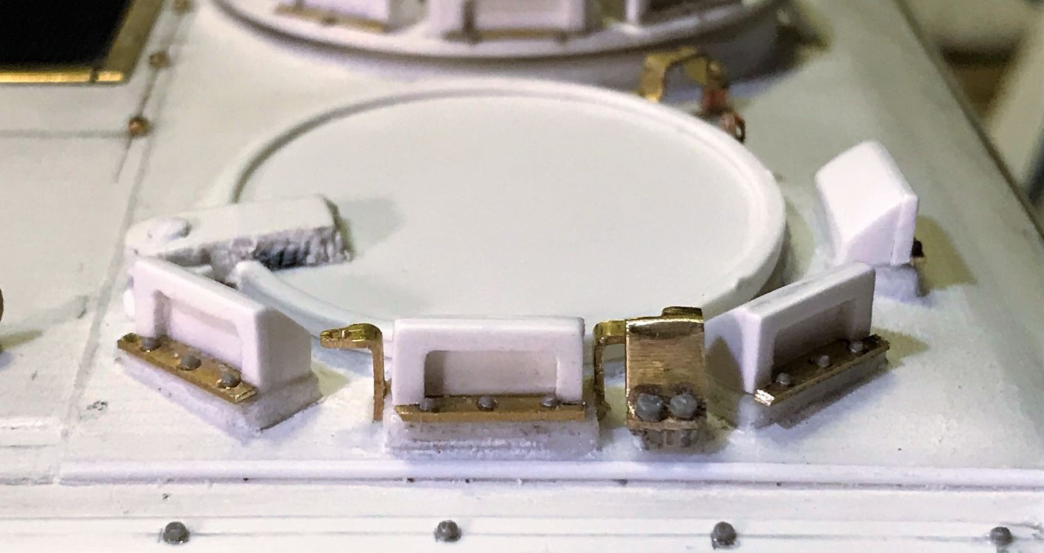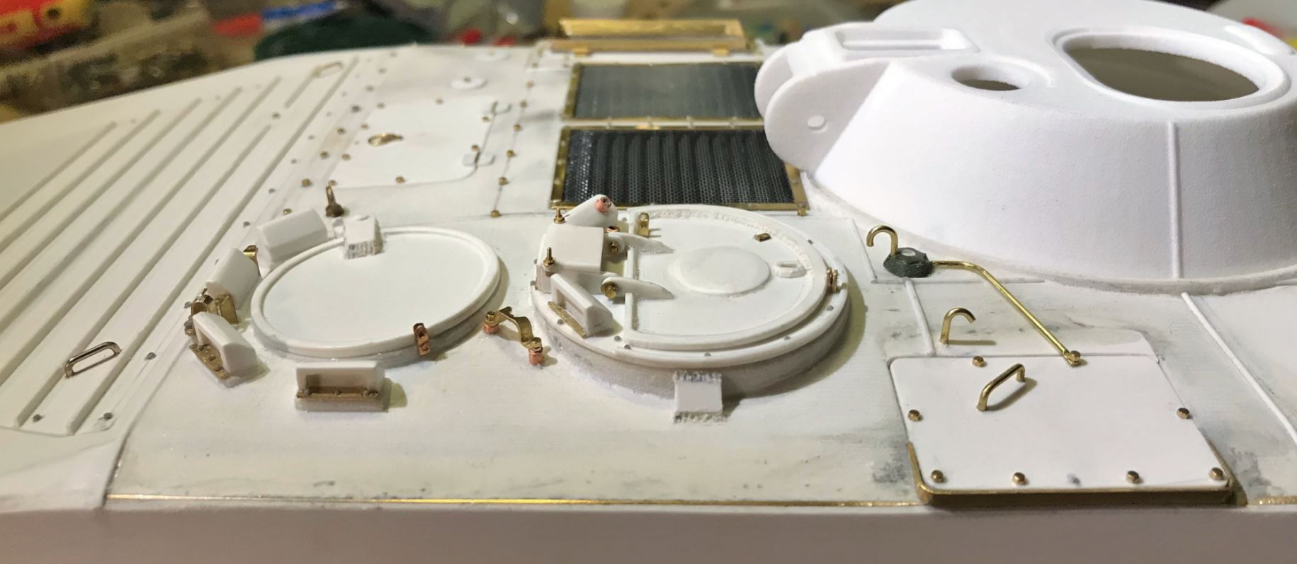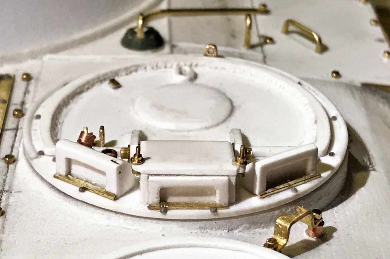 These are the engine air intakes. They should have small handles on the sides but they are too small and thin to reproduce in brass. I'll see if they can be done in other ways.