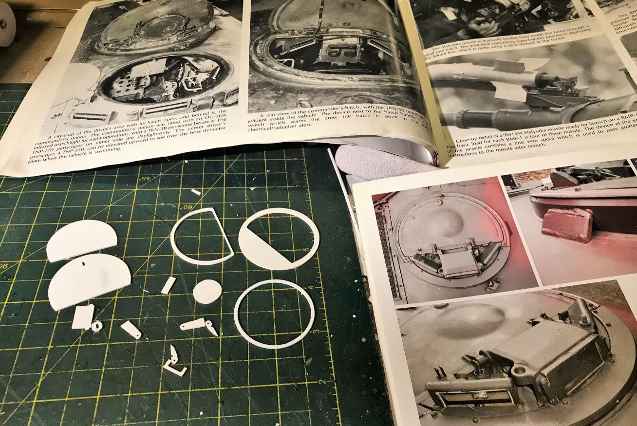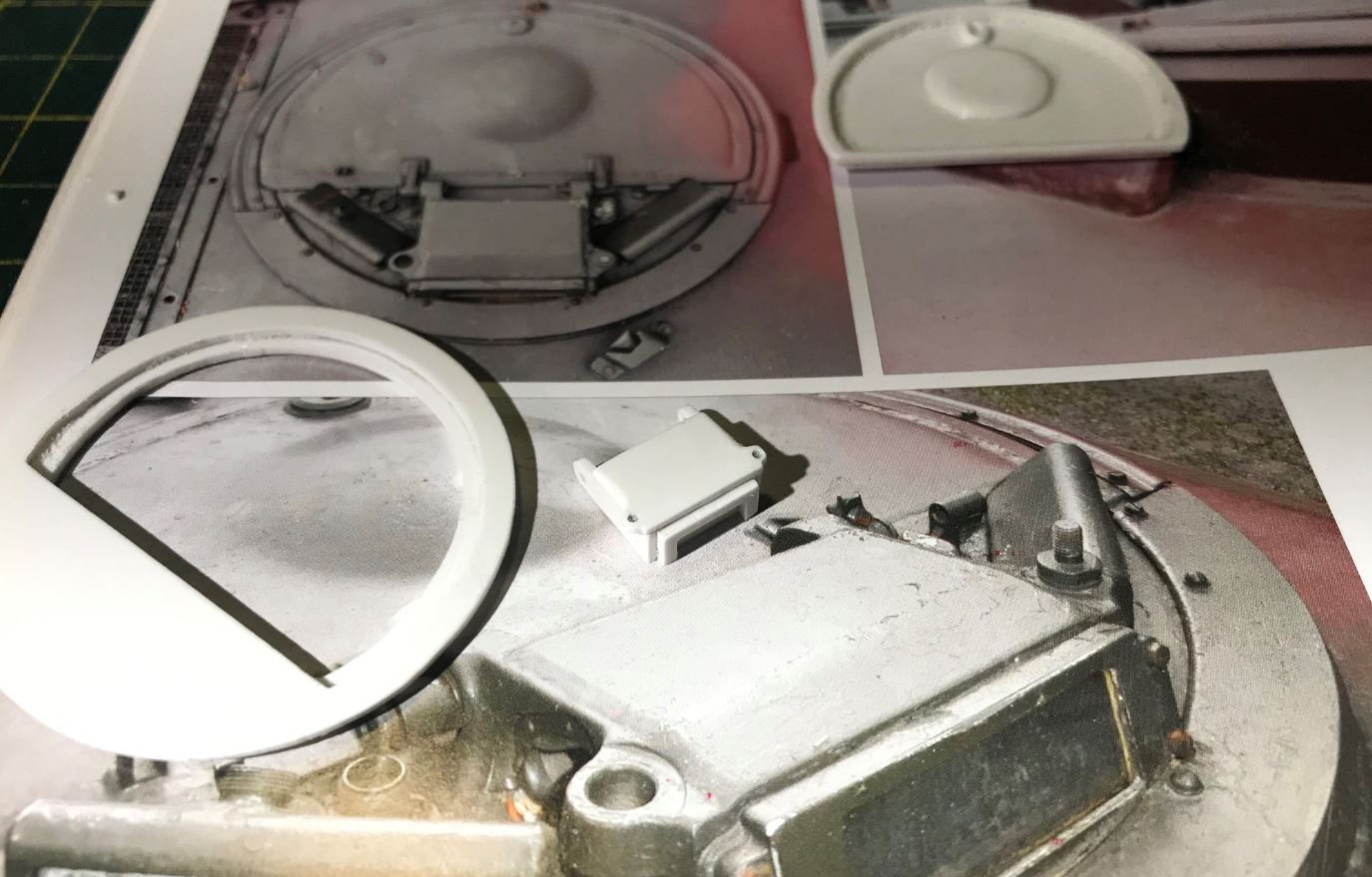 The more complex commander's cupola is a real puzzle and references must be studied carefully on how to use the parts provided by Christian.