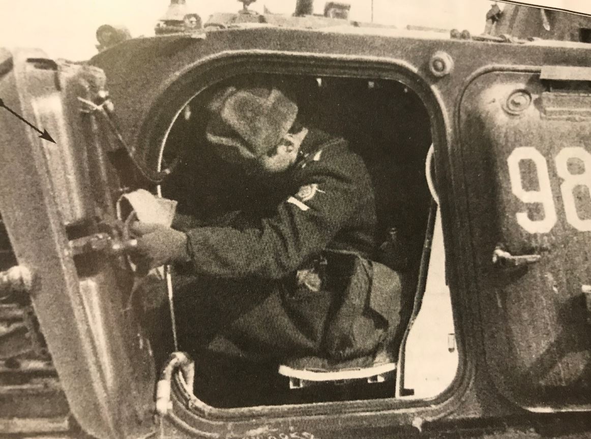The BMP interior is quite low and cramped. Makes you wonder how tall Russians actually fit in there. As a 6 feet 4 inch guy, I personally prefer the large electric ramp of the M113. Notice the fuel tanks inside the rear door... not a good idea, extra armor would be wiser.