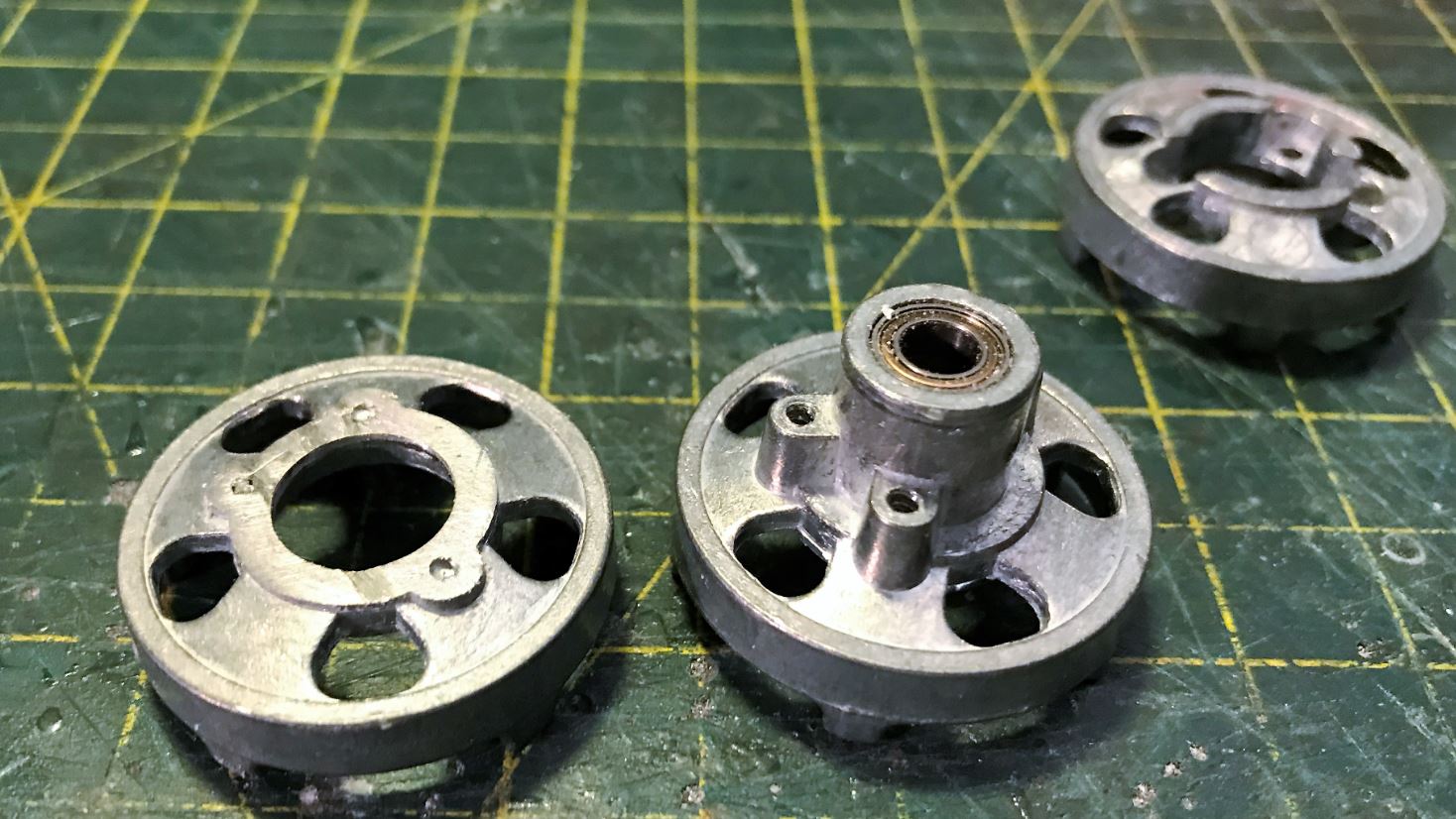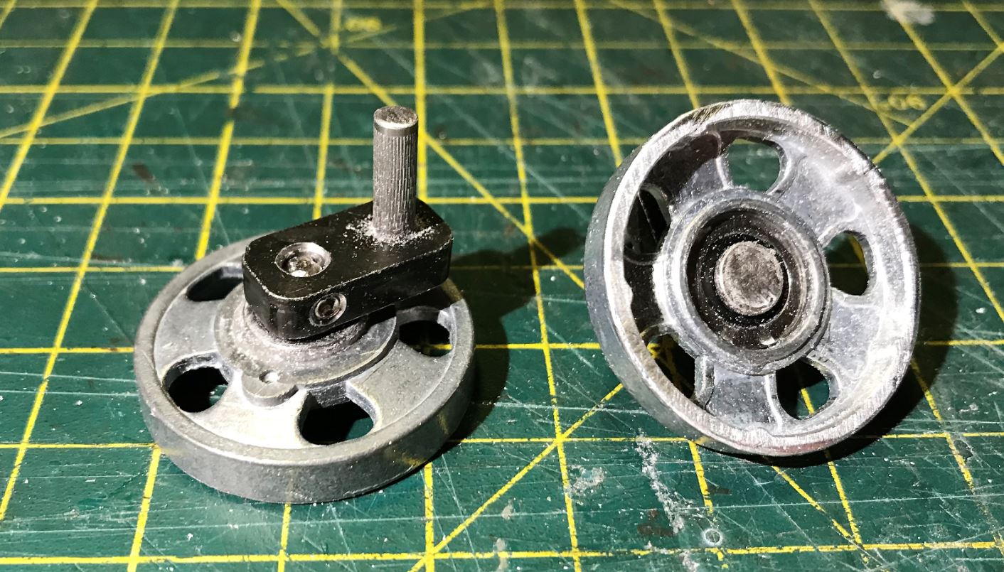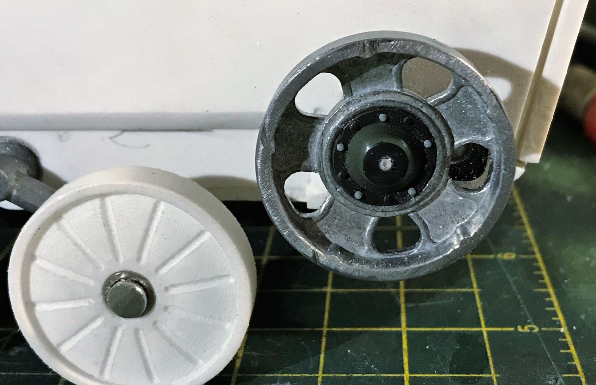 Modified Mato T-90 idler wheels were used, not ideal but at least they have 5 spokes. Once disassembled, the shaft on the exterior half was cut to create the core of a BMP idler wheel.