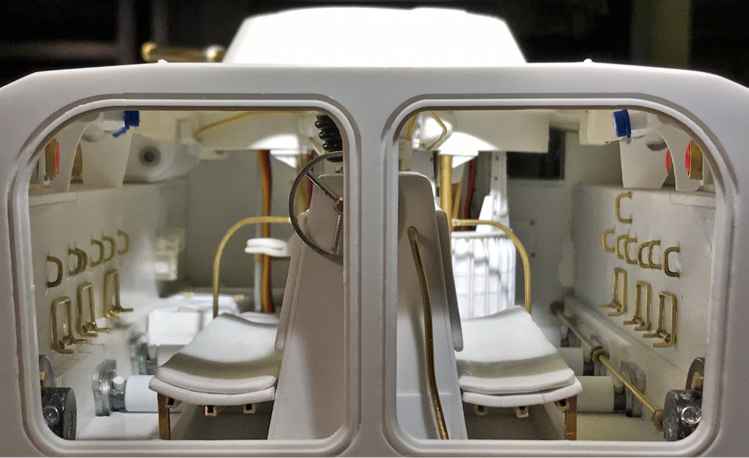 Here presenting the basic interior, minus the electrical cabling, straps, radios and other items that should be added only after painting. By reviewing the pictures for this post, I also noticed a few things that needs to be redone, common with scratch building.