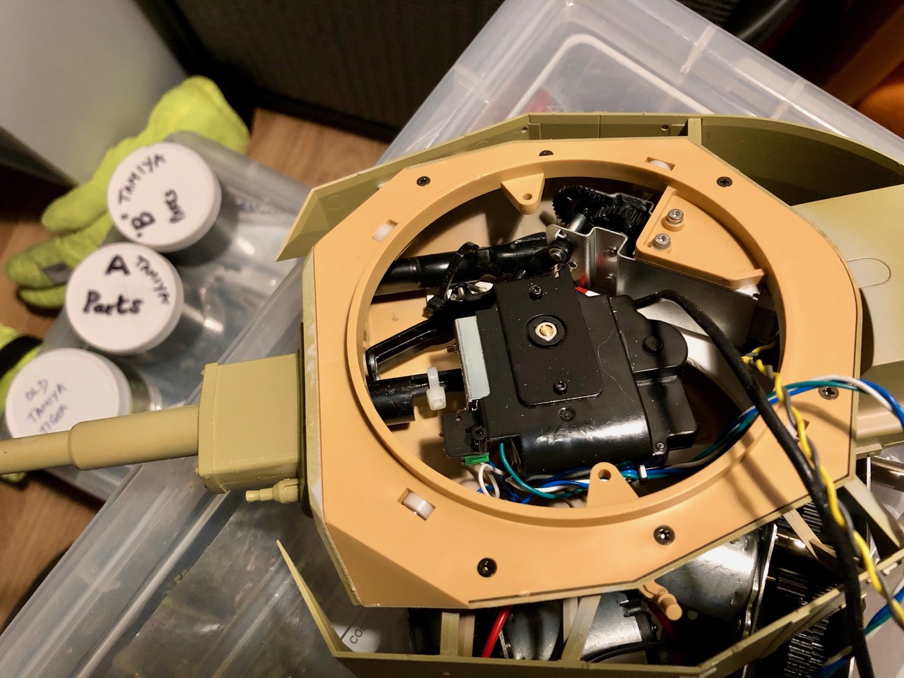 When the turret ring goes in, along with the turret motor, the gaps between the moving parts: the ring; the elevation arm; the recoil unit (elevates/depresses) and adjacent static parts, begin to narrow alarmingly-