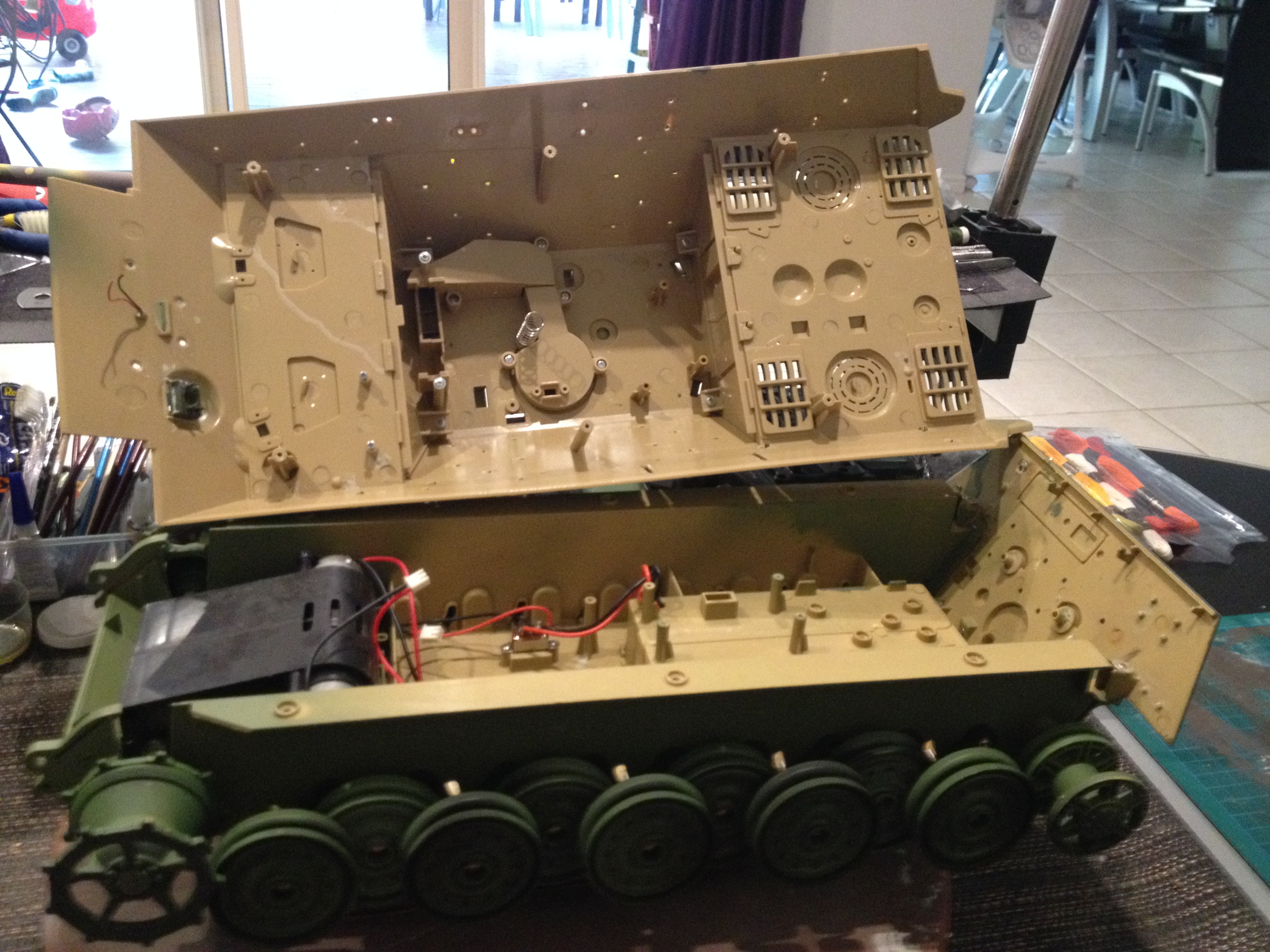 As for the wheels they are pressed on not glued so you need to wedge a screwdriver between the suspension arm and the wheel hub to lever them off. The lower hull will be difficult to extend due to the way the battery box opens the same way as the heng long tiger. I bought a heng long king tiger lower hull to replace mine a lot easier to extend and a lot cheaper than the torro jagdtiger lower hull.