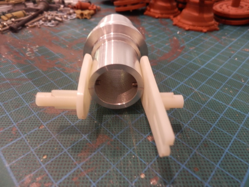 To get this whopping barrel into my most underspec'd tank, I will have to mount the Taiger recoil/elevation unit, and mount the pivot ears to the barrel sleeve.