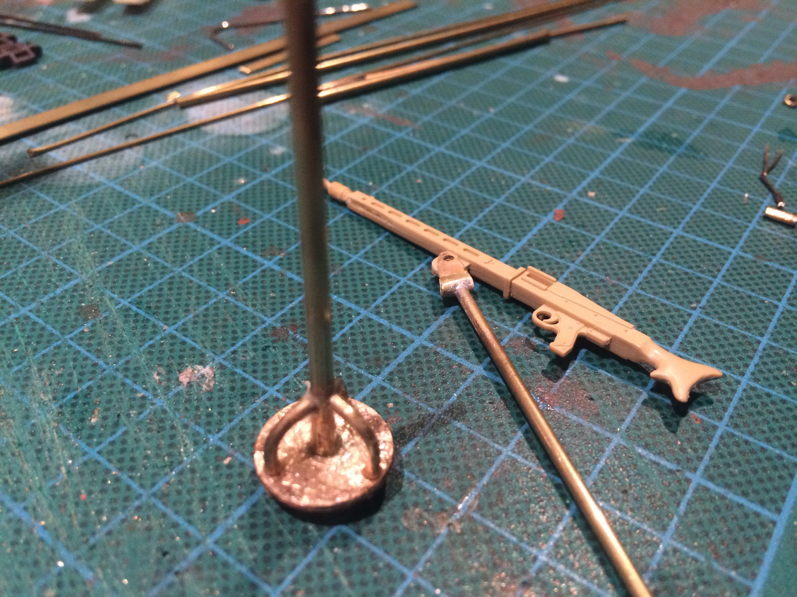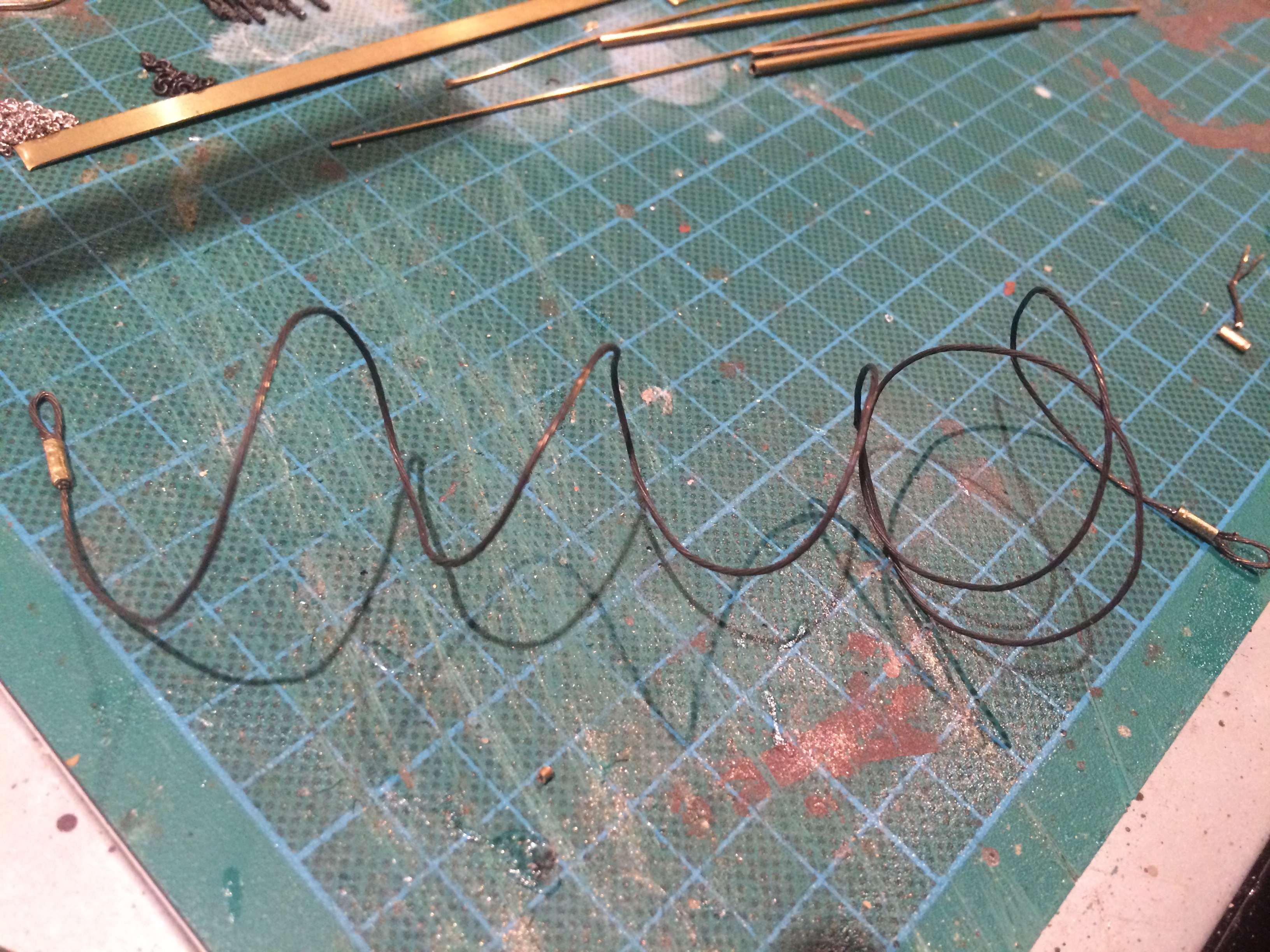 I have a Tamiya MG42 that Ive made fit onto a brass mount and the track pull cable is made from brass picture hanging wire with brass ferrules crushed with pliers.