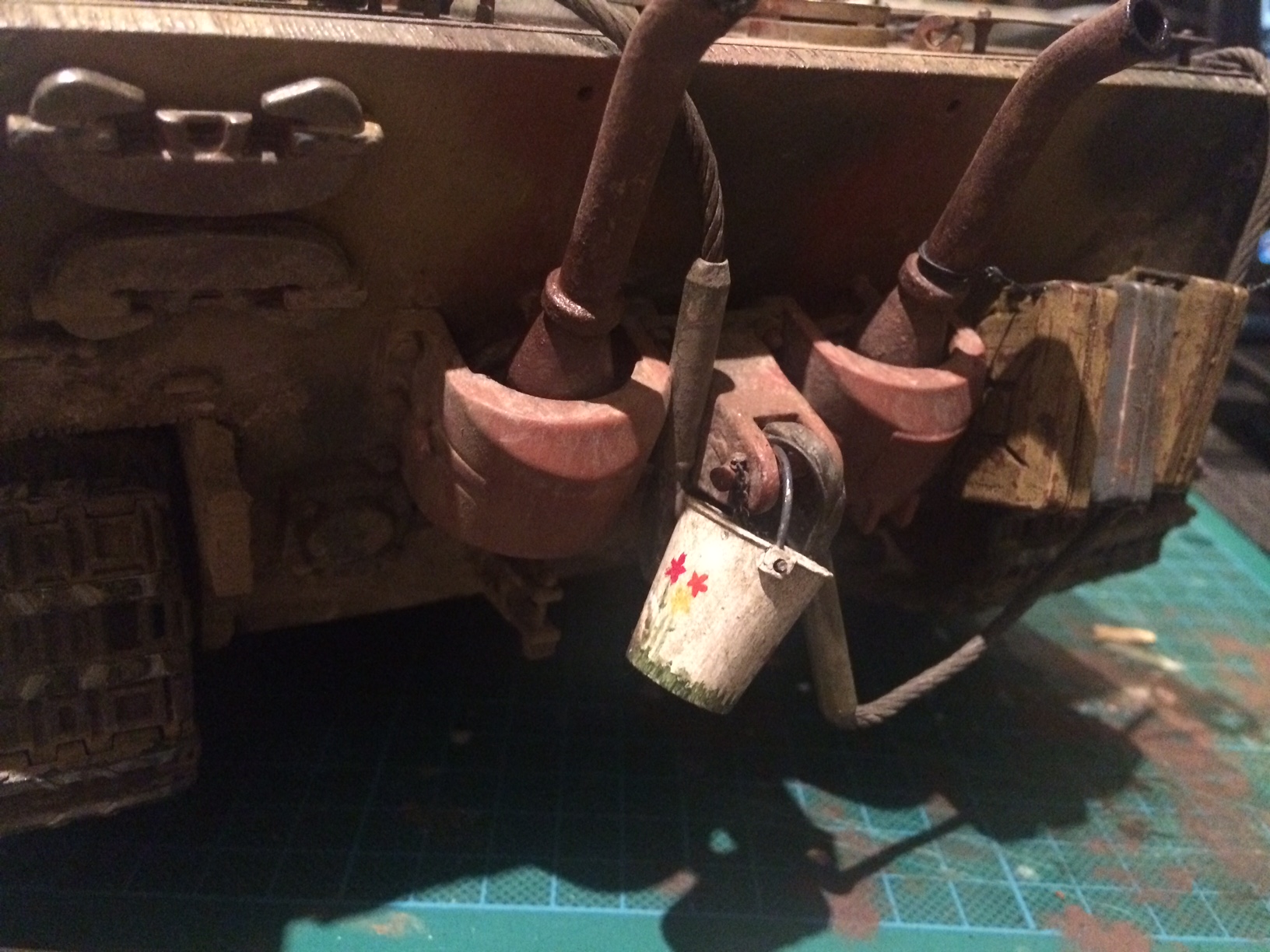 Hung the jerry cans on the back end and fitted the bucket with 9 flowers. (Picture not the best on the back sorry)