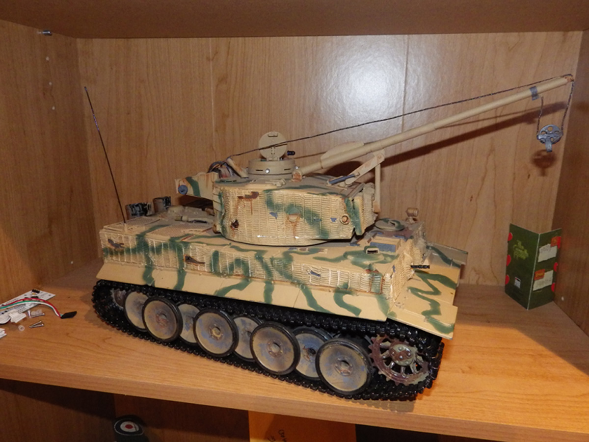 Ok here's mine! First try at building a tank. Started off as a metal upgraded H/L Tiger in gray but I quickly started throwing tracks. Upgraded to a Taigen metal hull, Mato early metal road wheels, Taigen updated idler wheels, 4.1 steel geared gearboxes with high torque motors, all the hatches are metal so are the mud flaps, new aluminum Taigen mini ball machine gun, photo etched grills, relocated antenna, properly clocked commanders cupola, custom made switch bracket is located under the radio operators hatch, under the drivers hatch is a Traxxas style plug to re-charge the battery. Have a new Super Smoker II coming to blow smoke thru the modded mufflers that smokes thru the center hole where it should come out. Also removed the left side antenna tube that shouldn't be there. Gun blued the tracks followed by rust blued. Oh also correct headlights were installed and a little bit of battle damage. Needs a little bit more detail work but here she is!