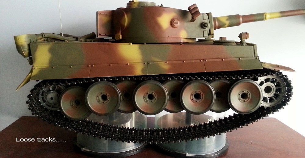 just about finished my camouflage job on the Tiger 1 just the weathering to go and paint the sprockets.Put on new metal tracks instead of the plastic ones and as you can see they are much to loose at first i thought the gearbox had packed up but i'm sure its the sprockets slipping on the loose tracks.