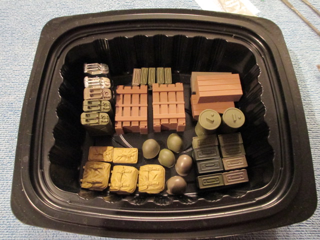 PainlessWolf wrote:44th Day: After looking around a few minutes for a bit that I _knew_ that I had, I decided to tidy up a little before going on. All of the Stowage and spares that Sassgrunt and Alpha had shipped me were gone through and rebagged by vehicle type. I added the spares that I had been holding onto into their bagged items as well. Essentially, if it wasn't going on the M4A3 build, it got tagged and bagged and put into one of the two Husky brand toolboxes I had purchased for spares and anything else that wasn't tool or paint related. When I was done, I was amazed, two toolboxes full! Along with the tonnage sent along by Alpha and Sass, I had accumulated a fair bit myself, including a lot of MATO Sherman and HL M-26 Pershing material. For actual tank related work tonight, I removed the tools and gave them a once over. They will be fine once a 'Phil' type job is given unto them. ;o) I put together an extra couple of racks of stowage that the Dynamic Duo had sent along and am well satisfied that I have plenty now to put on a freshly gone over Sherman rolling out of the Field Repair Depot. Pictures: