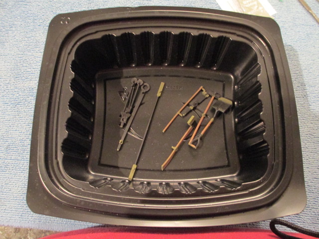 44th Day: After looking around a few minutes for a bit that I _knew_ that I had, I decided to tidy up a little before going on. All of the Stowage and spares that Sassgrunt and Alpha had shipped me were gone through and rebagged by vehicle type. I added the spares that I had been holding onto into their bagged items as well. Essentially, if it wasn't going on the M4A3 build, it got tagged and bagged and put into one of the two Husky brand toolboxes I had purchased for spares and anything else that wasn't tool or paint related. When I was done, I was amazed, two toolboxes full! Along with the tonnage sent along by Alpha and Sass, I had accumulated a fair bit myself, including a lot of MATO Sherman and HL M-26 Pershing material. For actual tank related work tonight, I removed the tools and gave them a once over. They will be fine once a 'Phil' type job is given unto them. ;o) I put together an extra couple of racks of stowage that the Dynamic Duo had sent along and am well satisfied that I have plenty now to put on a freshly gone over Sherman rolling out of the Field Repair Depot. Pictures: