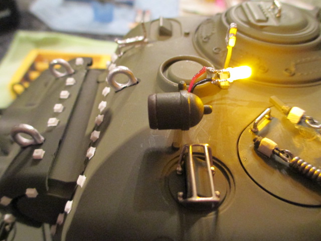52nd Day: Nothing in the post today but cookies from a dear Friend in Alsdorf. A tasty way to end 2013's Holiday Season ;o) Sherman-wise, All I did tonight was to strip my crappy heat shrink off of my searchlight LED and coat the hot lead with rubber cement. As a finishing touch, I repainted the inside of the searchlight body with silver. It had gotten scraped up where I was enlarging the light port. I'll let everything dry overnight then put it back together during tomorrow night's fun. Pictures: