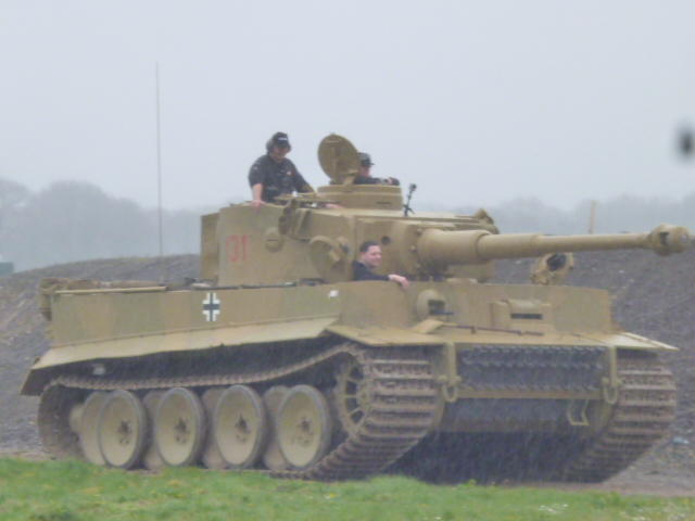 When we were at the Tankfest,....we met a couple from Arkansas..they were in there 60,s...and had come over especially for the Tankfest...the husband..was a member of a Re-inactment group in Arkansas...and had brought his black Panzer uniform with him....and he,d made a substantial donation to the museum...and in return the museum allowed him to dress up in his Panzer uniform and ride in the Tiger as it ran around the field....the guy from Arkansas is on the left..in the loaders hatch..