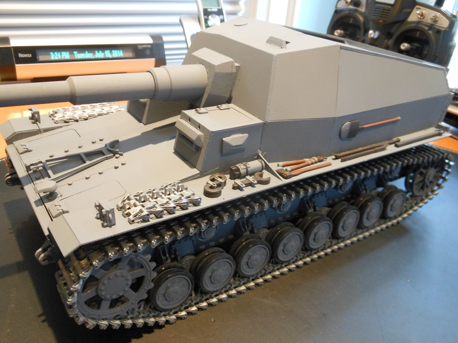 While reading about the speaker and it's placement with the sound not being that loud,on this site that you posted can-amrctankclub it was mentioned maybe the speaker could be placed or turned around and that holes could then be drilled. This is just a thought that I had while I was building I had wanted to place the speaker under the gun mount facing up and have the sound travel up and out through both the side stacks/vent that would exit the vehicle .