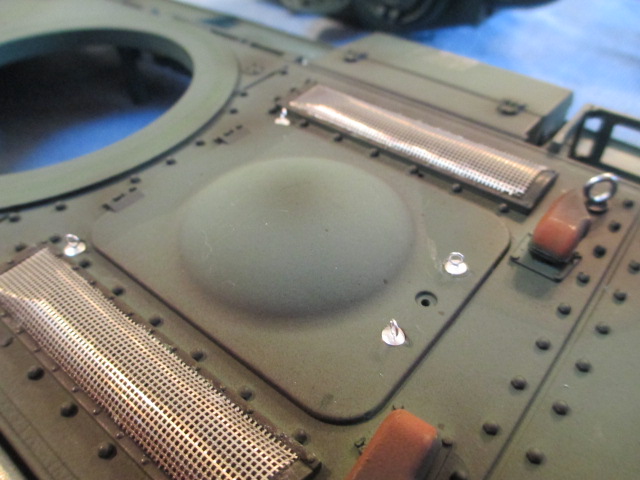 Opinion on the rear deck lifting eyes, Alpha? I slept on it and they are a little outsized as I view the ones on the research Trumpeter KV-2. I will probably unscrew them and make some out of solder or wire. Yours, I will leave alone as they are a good fit up front. Also, I may just use them for all the lifting eyes as everything will be the same size then.