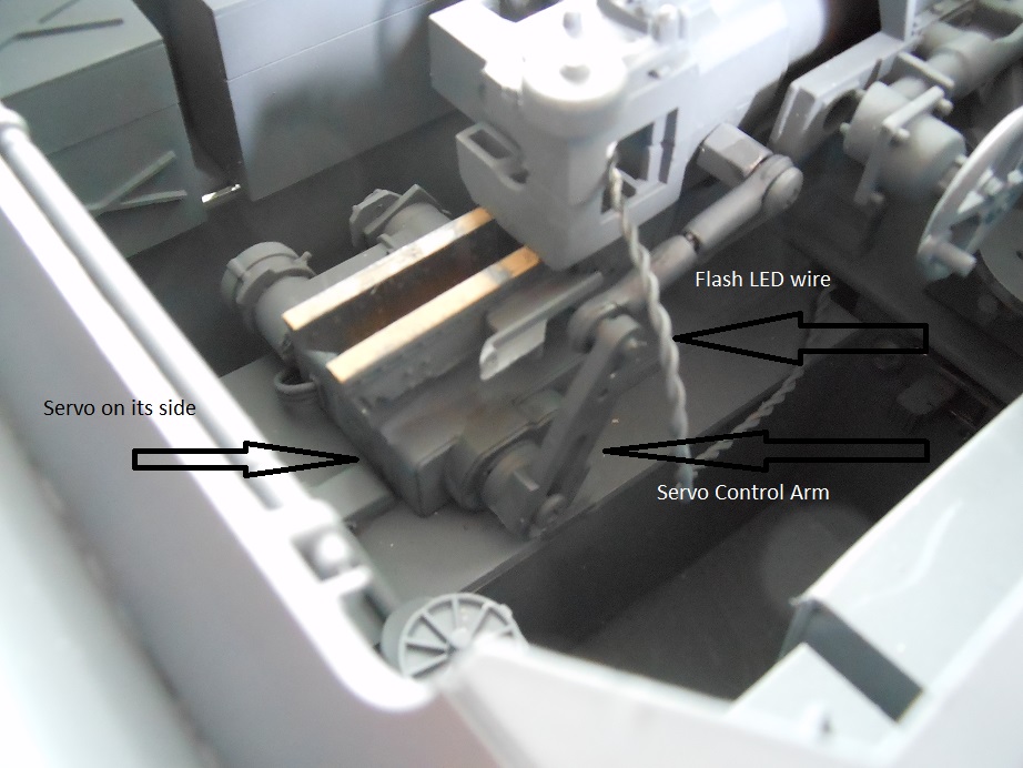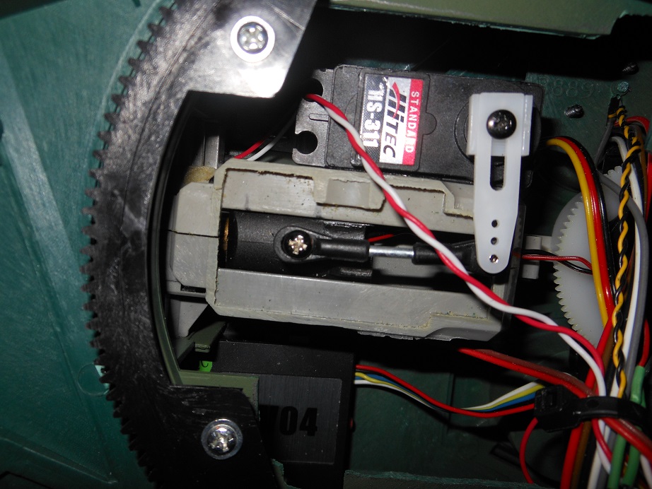 Here is an example of mounting the servo directly underneath. I have to because it is an open cab so I need to hide the servo somewhat. but the idea is the same for a turret.