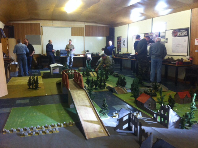 We have a large indoor battlefield set up with buildings, bridges and trees for you to drive your tanks around! All are welcome.