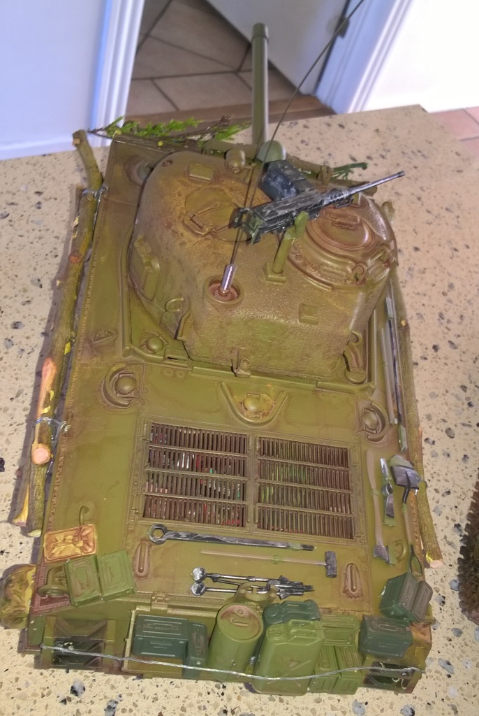I love a good Sherman well done. The rope on logs and brush is a great touch! Stowage is sweet as well.