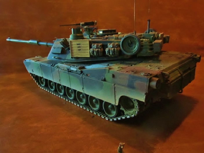 I just did a lot of research. I know return rollers are incorrect but you can't see them with the skirt doors closed. Don't think I will cut out the mud slots as they may weaken the plastic sprocket. The bustle rack extension was not an automatic upgrade of the SEP program as I understand it the Marines had their M1a1's fitted with them and when they went through the SEP program they were reused during the rebuild process and when reissued could end up in army or marine units The one I'm doing is not the SEP v2 It is the M1A2 SEP. On the v2 the vent for the APU in the rear sponson is no longer located on the hull rear but I believe was rerouted through the left rear engine grate, the right taillight has a protective cover on it, there is a GPS antenna just behind the commanders thermal sight tower and there is a completely remotely controlled 50 cal mount for the commander also the loaders protective shields and bullet proof glass are standard. There are few other visible differences like water can holders on each side of the rear bustle . The main reason that I am not doing it as a SEP v2 is that I have not been able to find detailed picture of the commanders new remote control 50 mount from all angles. Only head on pics. The 1st SEP tanks took part in operation Iraqi Freedom alongside M1A1's , some still with nato camo on them. The SEPv2 has replaced most of the first SEP program tanks to the point that the National Guard will be getting them as their SEP's are turned in for rebuild.
