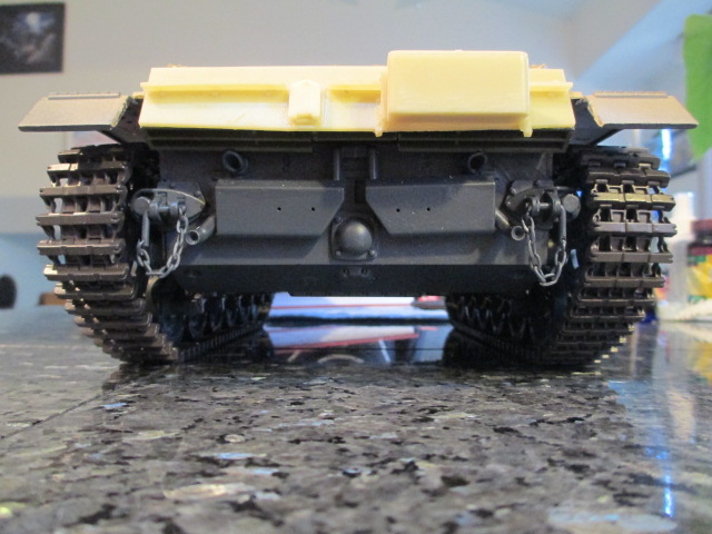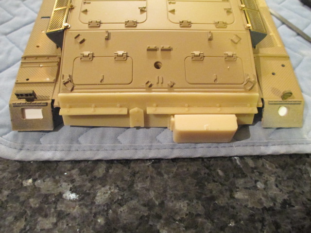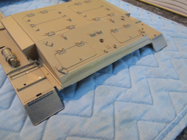 As promised, a little more work on the rear Deck along with some pondering on that full width air grill under the rear armor plate. Pics: