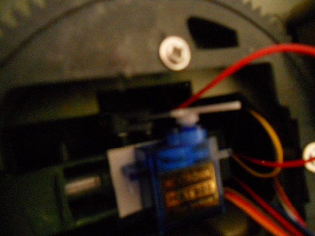 I used the recoil unit on the IR version that I have. There is a slot in the side with a tab that sticks out, the spring is normally attached there. I took the unit apart, stripped out the motor and gears and cut the bottom off. Screwed what was left back together. I then mounted a link between the servo arm and the tab.