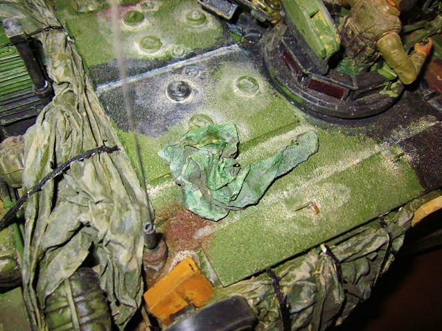 Just had to show some kind of damage so I made the left rear upper hull skirt looked like it was ripped off. Something that from what I've read happened many times.