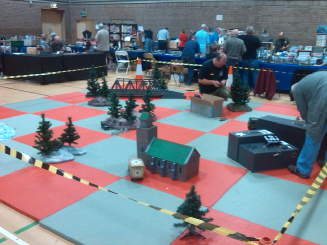 Just to say that we had an excellent time at the IPMS show. The organisers not only provided a large area and put down judo mats for us to run the tanks on, we had trestles and ample chairs as well. Cones were provided around the perimeter. All that we had to do was set up out scenery and tape off the battlefield. The request was that we run tanks without sound, except for a 15 minute battle with sound on the hour, every hour.
