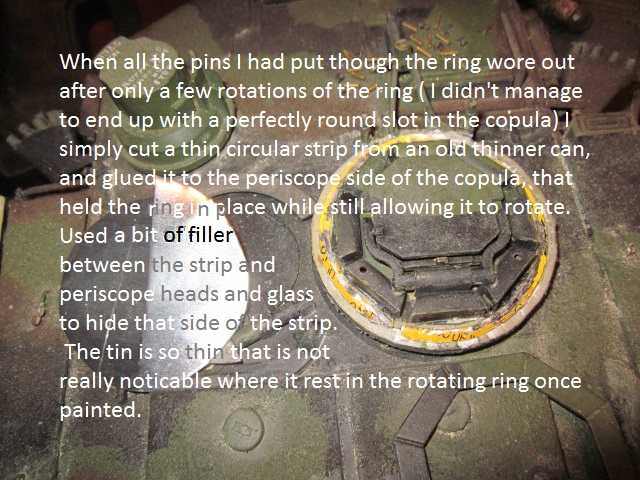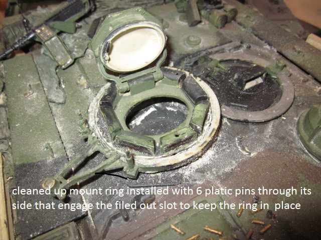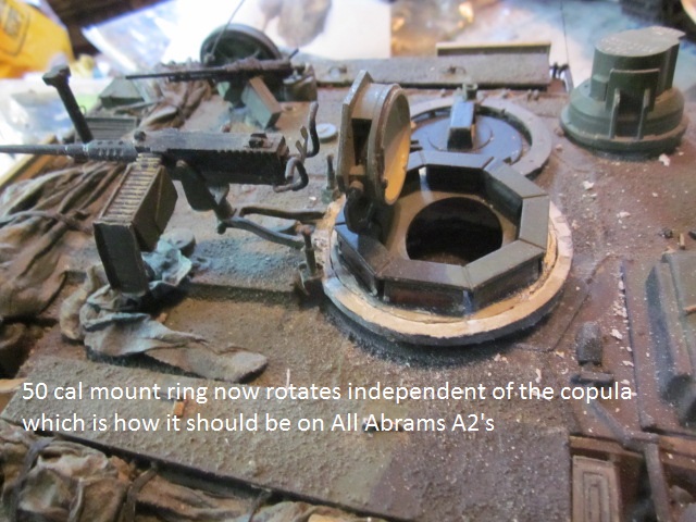 Here are pics of how I corrected my mistake and made the copula stationary with only the 50 cal gun mount ring rotatable on the stationary c0mmanders copula.