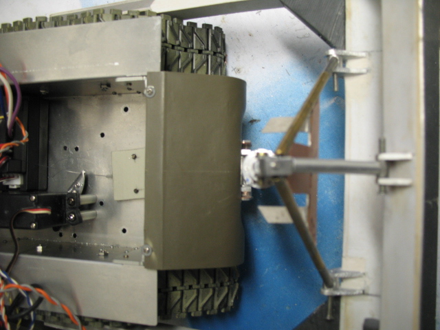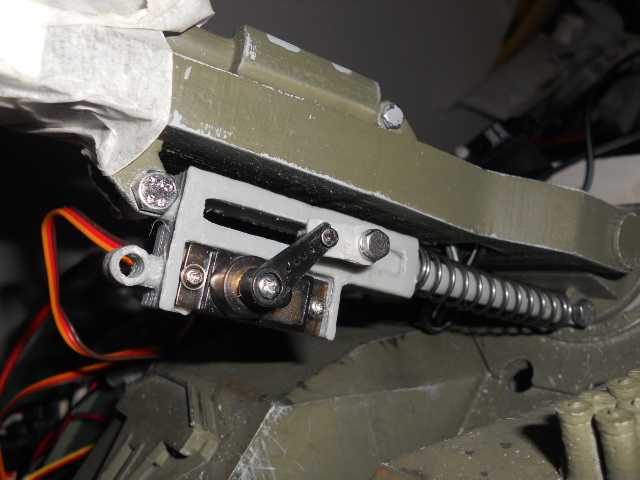 As good as I can make it. Not perfect, cables snag a bit, and the end of the arm is held down with a neodyne magnet to stop it moving while the AEV is in motion. Electronics are an SLU (need to disable the gun recoil), powering electric motors, with servo's running directly off the receiver. Need one more channel set up to operate the bucket motor, but that would need a small esc and run it off the last empty channel on the rx.