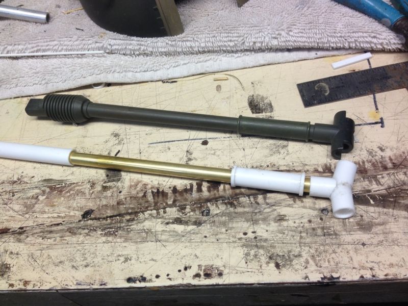 I tore apart all the pieces internally, in the turret, that would be in the way of future work. I also started on the barrel conversion and reclaiming the recoil bellow on the back end of barrel against the mantlet. I found the right size brass tubing in combination with some modified styrene tubing to create the sliding support for the barrel. I used the same modified diameter styrene tubing for the fume collector and muzzle break device. I also modified the break according to what I have found on my research for the m48