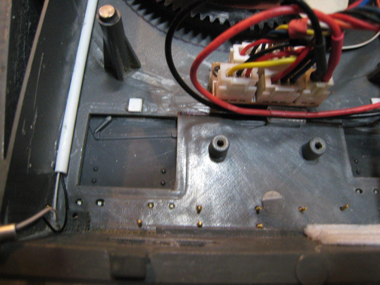The plate was a perfect fit over the HL alignment nubs and their gearbox screw pattern. It also came drilled and tapped and with the machine screws used to hold the gearboxes to the plate. In essence it fits perfectly. Raising it will also work because the reduction gears are in a falling pattern that matches the slope of the PzIV’s front, upper hull. The only catch is that the motors were hitting the 8-pin plug when it was mounted to the points that HL placed in the upper hull between the driver and RTO’s hatches. So, I had to move the plug by installing new mounts with styrene tubing that would fit closer to the turret gear ring.