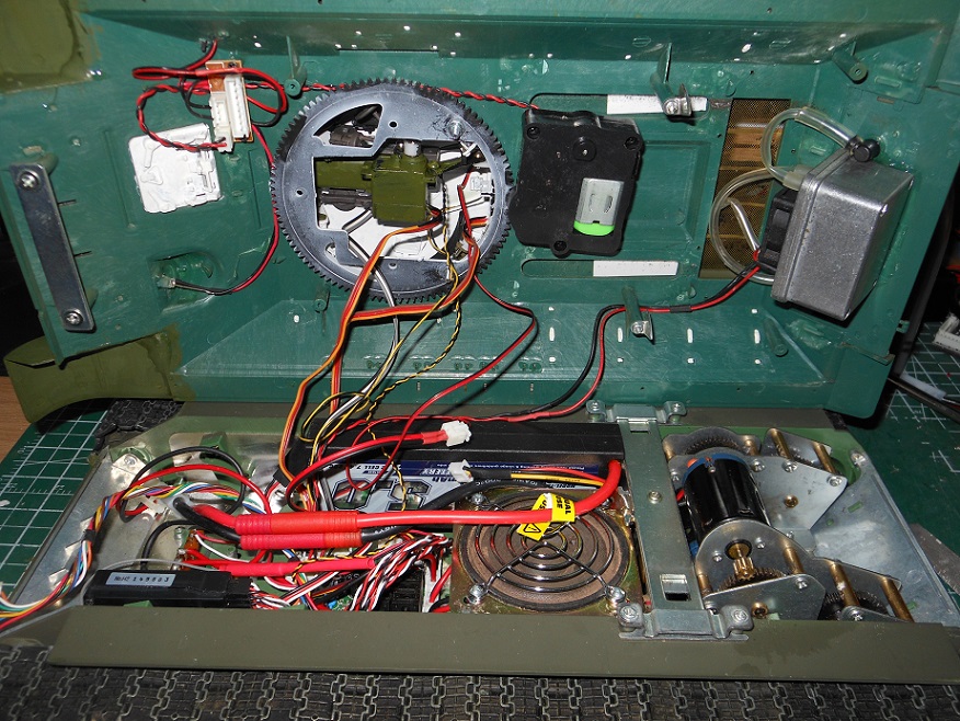 tao, Here is my Taigen T34....... Not bad but I wouldn't call it spacious either. Everything tightly pack, and I don't think you will be able to fit a FRS-7. My speaker is a no name 4 Ohm so it is bigger than stock, TARR smoker is fitted tightly bewteen the gear box, and the front part is basically shot because of the sloping armour, and this is without the battery case and a hardcase lipo sits on its side. You can't fit TARR MkII or IV since they are bigger overall. My Mk I just slides in.
