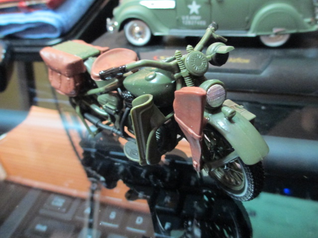 Another piece of the Diorama puzzle came in the Post yesterday. It's a neat little 1/18 scale diecast 42' Harley. I'll have to scout around to find a Courier\Rider now. Preferably some grunt in a long coat with some stubble and an attitude. ;o) Pictures: