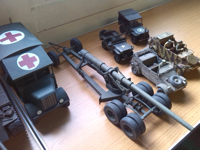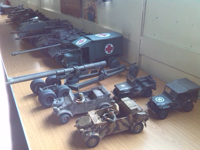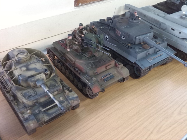 Tamiya Tiger 1, Taigen FlakPanzer IV,Torro M16 half-track, Tamiya Panther,WSN/Torro T34,Taigen M41 Bulldog,H/l/Taigen Sherman M4A3,H/L T90, Haya M3 Grant, Metal Origins 234/2 Puma, Nashorn by Alwyn. I was only going to have one tank - honest! :D