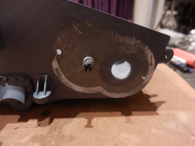 Centre plate on upper glacis track mount holes puttied up & sanded.