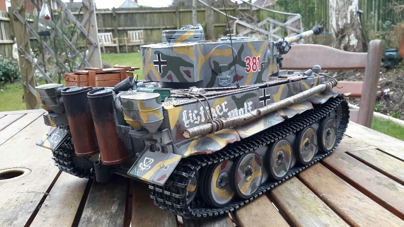 Here is my Taigen early Tiger 1. Here's my attempt at what an early Tiger tank crew would do with later paint to camouflage their tank to their surroundings. World of tankers will recognise (Listiger Wolf) Cunning Wolf.