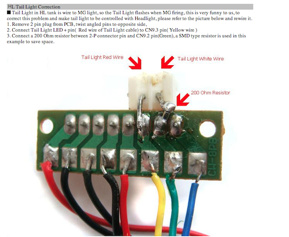 not sure if this will fix your problem, but i did this and it worked. It stopped the tail lights flashing with the mg on my HL Sherman.