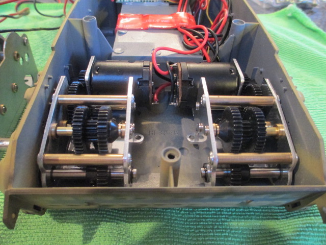 As far as motor clearances go, how about a pair of those new, low profile Taigen gearboxes and motors? Like the ones I put in the early StuG B I built last year. They should leave you a lot of vertical height space as well as having strong motors and black steel gears?