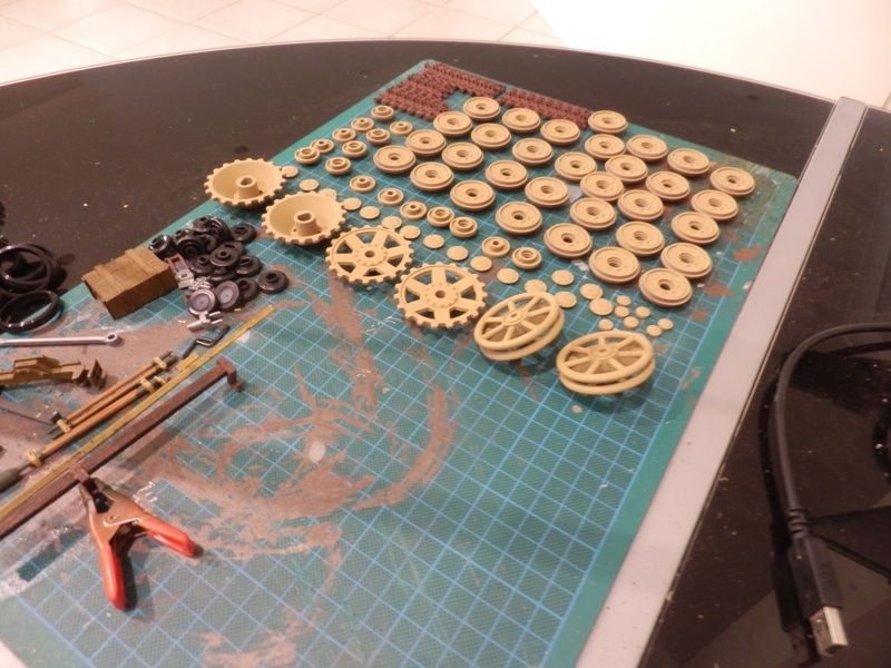 Got the sprockets, idlers and return rollers on(I will paint the rims on the late return rollers to resemble tyres) and plan to fit the roadwheels over the weekend.
