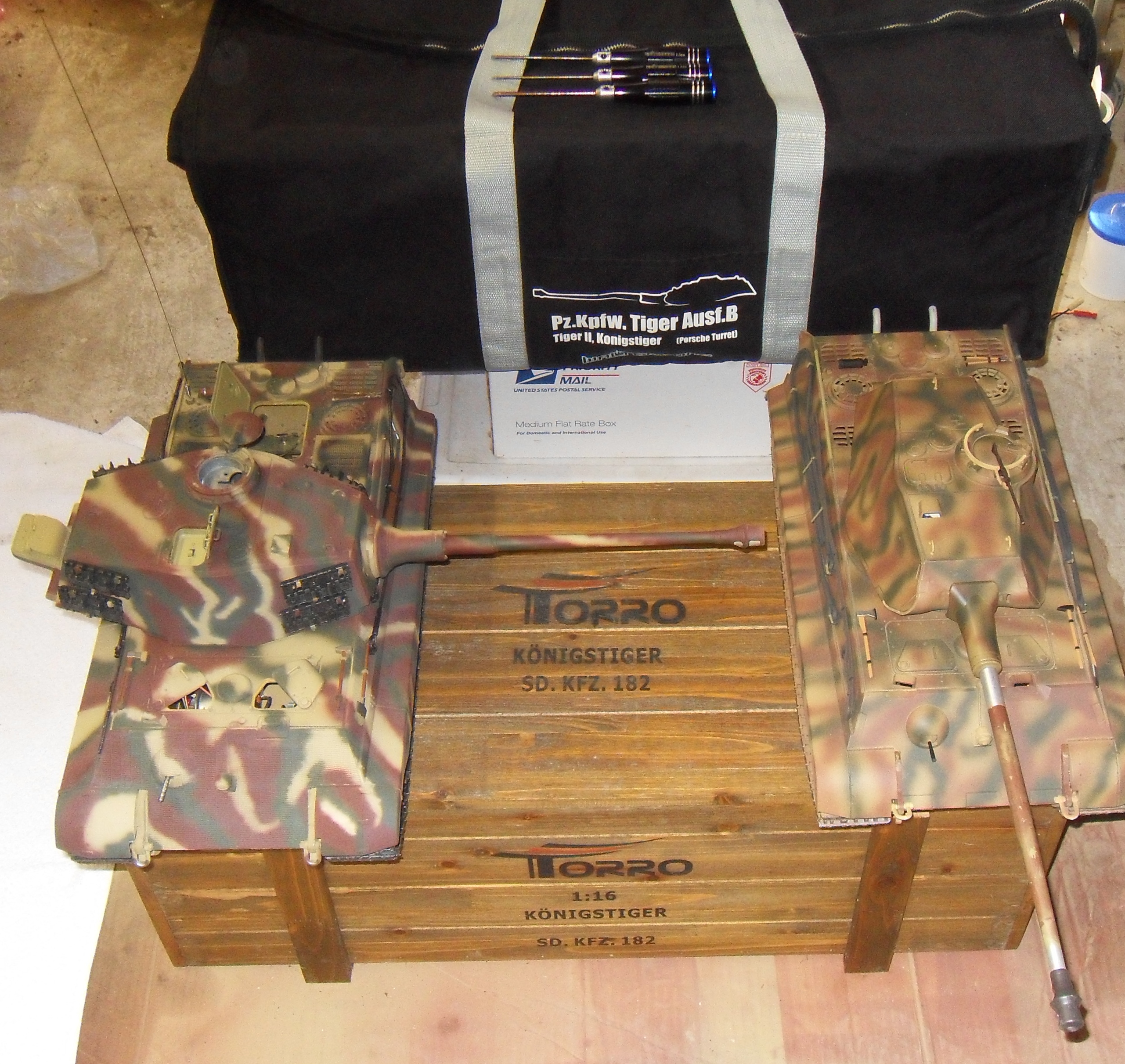 My last two builds before I stopped and life got in the way, these tanks have some unique features,the PORSCHE has my last recoiling airsoft gun design and SUPER SMOKER which I mention because of the stand alone controls issue. The Torro is basically stock but needs a working gun,smoker and massive power as it is my best tank. I am certain Chris your ideas have value in helping me achieve my goals.So here we have two test monkeys,lets create a monster pair ok? :thumbup: