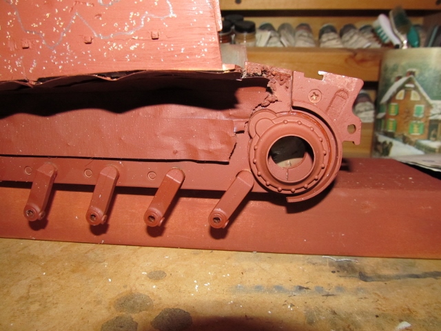 Impact torsion shafts have been removed to trim back to fit width of lower hull on T1