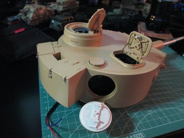 It was a very busy weekend with a couple of days of driving so I was very happy to be home and back to working on the Tiger. Thank you, C.R.73! I just do what I can do to add a little pop to the kit. I painted the hatch and mounted it to the turret. It works well and there is enough of a friction 'clip' into place that magnets will not be needed. Pics: