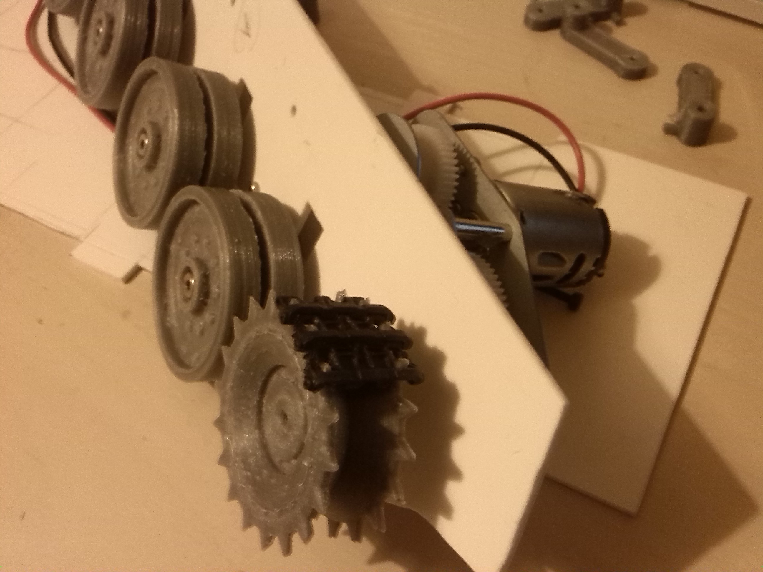 My poor printer has been going from morning till night for days. Fully assembled one side, all working suspension, and everything lines up so the tracks should stay on the wheels and sprockets. Still need to do the return rollers and spacers, I''ll get on to that tomorrow.