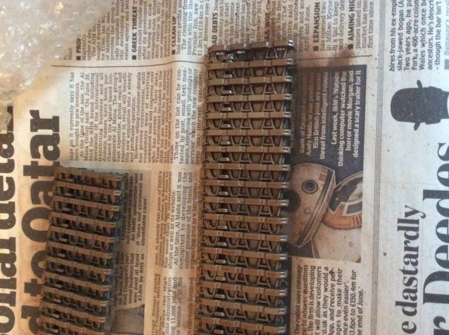 Hi Guys need a bit of help, I got as far as adding mud weathering powder and failed. I tried weather pigment fix then adding my 'mud' trouble was it didnt fix. So I stripped back to bear track. Took a bit of doing but I'm there. Plan 2 is to prime the track with a primer from my local car spares shop, then paint metallic steel, although the bare track with black wash currently looks quite good. So with this in mind should i forego the painting and get on with a mud enamel wash, and if i do this can i add my mud weathering powder as i go along? Will it be OK using pigment on top of wet enamel wash?