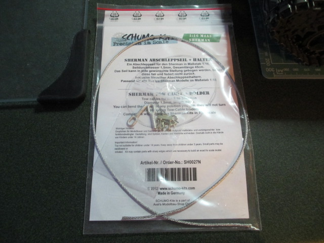 Back is giving me grief again tonight so only a little got done. I made up the mounts for the On/Off and the Sound Pot switches. The Loc-Tite epoxy I use to mount the rubber bits needs to cure for 24 hrs. Post brought in a piece of the detail I'm adding, a nice Schumo American tow rope set. That came from Robert at ETO I'm waiting for him to get the working barrel brace in before I remove the existing one. Interesting story on that barrel brace,. In one of Steve Zalogas books on the Sherman, I saw a photo of the M36B1 _with_ the barrel brace on the front of the hull like any other M4A3. It was the tall brace like the one used on the 105mm version of the tank. So not all of these make-do versions of the TD got everything we have come to expect as relocated, ...relocated. Pics: