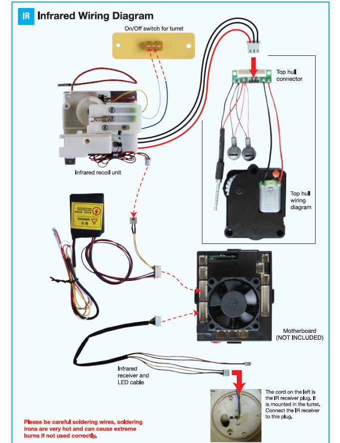 Hello I'm needing some help with a new IR KV-1 turret I bought to replace the BB turret that the tank came with , Obviously the wiring is different and I don't know where the 3 wires 1 red and 2 black wires go , they don't have a plug , any help appreciated .