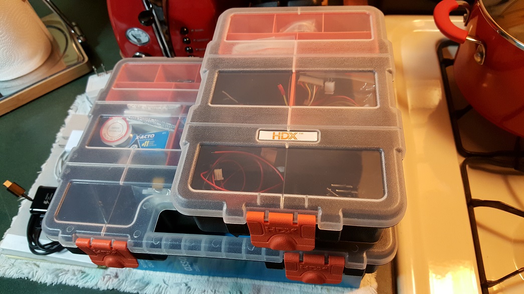 Intial WIP on the electronics.  Included are a battery pad and a grease.oil barrier box for the electronics case.
