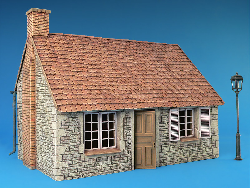 I'm in no rush & i'll be using as close to real building techniques as I can. It is my intention to draw up a blueprint after I have bought the required windows & doors. Door & window sills will be finished stone & the building materials will be rough faced Sandstone http://www.miniaturebricks.com/bricks_w ... ng/l4501ys mortared together with this http://www.miniaturebricks.com/l4001. It is my intention to build the building on a 3 x 2 stone flag {so it's going to be heavy} as recommended to me by my Brother who is a Builder & helped build the local model village. Once a couple of layers of stone have been laid floor joist will be fitted & floor boarding fitted using pins as nails. Once the whole floor is sanded building will continue until I reach where the upper floor Joists will need to be fitted. The inner walls will then be plastered & painted & furniture fitted in place & stairs added. Once i'm at that point the joists will be fitted & floor boards added. When I get to the roof any internal fittings will be added before the rafters will be added. Roof felt will be added & then baton added before the tiles go on http://www.miniaturebricks.com/roofing/ ... es/l1013ov . Pins will be used for nails through out the construction & the roof tiles will need holes drilling for fixing points. As a rough guide I counted the tiles on the pictured models roof & I estimate around 1400 tiles to roof such a small structure {explains why I didn't try a larger building to begin with?} . I'm not adverse to using super glue to fix or help fix certain things in place, as long as it isn't noticeable at the end of the build?